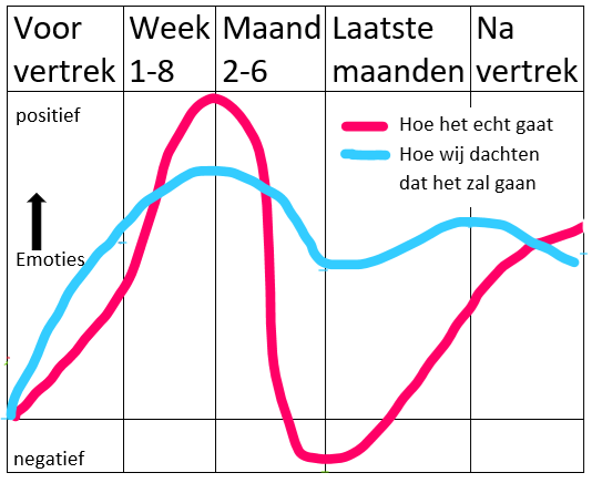 Er waren ook andere activiteiten die ik leerzaam, leuk of onverwachts vond. Onder andere de verwachtingentabel. Met de hele groep moesten we onze emoties inschatten (zie de tabel) en dat was toch wel net iets anders dan wij hadden gedacht. Nog een puntje was social media, waar ik eigenlijk niet zo over na gedacht had, maar dat wel een grote invloed kan hebben op je exchange. Dat je jouw eigen exchange niet moet vergelijken met anderen. En dat op social media alleen de leuke kanten naar voren komen en je dus niet weet of er ook mindere dingen zijn.