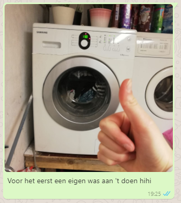 Dus ik hield twee mogelijkheden over, of geen schone was, of ik moest het zelf doen. En omdat de eerste eigenlijk geen mogelijkheid is, zat er maar één ding op. Het zelf leren. En dat gaat verbazend soepel. Een 40 graden wasje hier een 30 graden wasje daar, wat wasmiddel in de wasmachine, juiste programma selecteren en gaan! Dan ophangen, laten drogen, vouwen (soms ;)) en dan mijn kast in bonjouren. En als dat lukt, moet dat natuurlijk gedeeld worden met het thuisfront.