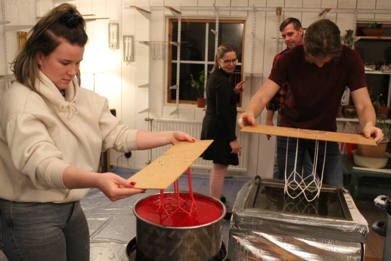 Een weekje later gingen we kaarsen maken met het hele gezin (dus ook met Saga en Martin). Het was kei gezellig, maar je moest wel geduldig zijn, en laat dat nou niet mijn sterkste kwaliteit zijn ;). Tussendoor was er een high-tea en er was een klein winkeltje met super schattige producten. We konden kiezen tussen een heleboel verschillende kaarsen. Uiteindelijk maakte ik 6 Tomtenkaarsen (Tomten is de Kerstman).